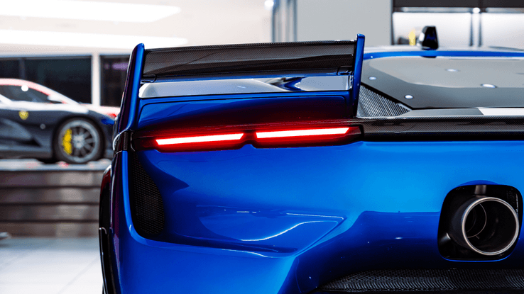 Finished in the eye-catching Blu Corsa, the 849 Testarossa captivates with a bold new design language. Its combination of vertical and transverse lines creates a visual identity inspired by aeronautics and the legendary Sports Prototypes of the 1970s.