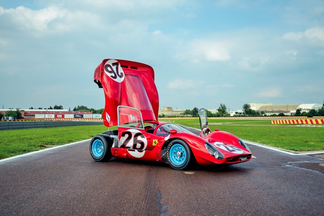 The clean sweep of the podium places was the Maranello marque’s emphatic response to Ford’s win at the previous year’s Le Mans 24 Hours. The 412 P driven by Lorenzo Bandini and Chris Amon was first across the line, with the other factory entry of Mike Parkes and Ludovico Scarfiotti finishing second, ahead of this particular car, in the hands of Rodriguez-Guichet.